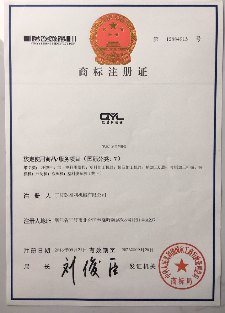 寧波乾易利機械有限公司(原寧波新銳機械)是一家積累多年專業管理、研發、自主科技創新、制造、銷售、服務一體化的塑機及自動化企業。 公司專業生產立式、角式、臥式、熱塑性、熱固性(PF、UF、MF、BMC、DMC、SMC、DAP......)液態硅橡膠、粉末冶金、硬(軟)磁射出、金屬射出、陶瓷射出、特殊工程料等機械;為客戶提供安全、快速、高效、環保、節能;雙色及多色、全(半)閉環,蓄能器(快速射膠)、伺服控制、油電復合式、全電式、各種專機及自動化設備。 乾易利機械研發部門與國內外機械、液壓、電氣的頂端研究機構長期協作,隨著市場發展創造出更快、更精、更優、更節能環保及自動化、人性化的設備。 乾易利機械以人為本,推進兩個文明建設。以超前創新技術為理念,以質量取信于市場,誠信求發展,提供全系列專業技術支持與規劃。與客戶共同創新發展,永續經營,邁向美好的明天!